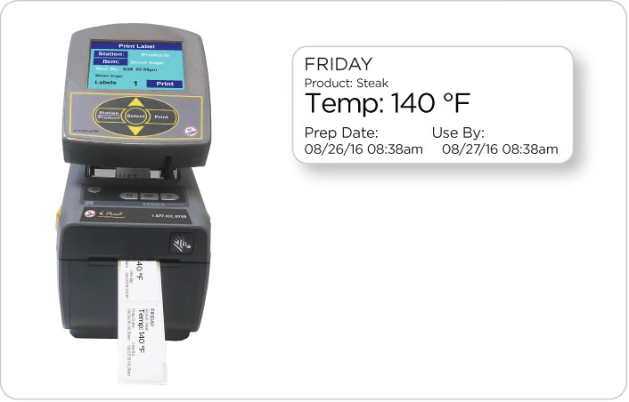Add i.Print™ to your kitchen and instantly print food safety labels for your products. Labels can contain: Product Name, Prep Time, Expiration and NOW --- Temperature of prepped products. Simply press "Print a Label" on your Scan ‘n’ Temp™ unit and i.Print™ will print a label with temperature readings on your product rotation labels. This feature makes FDA and HACCP compliance easy.